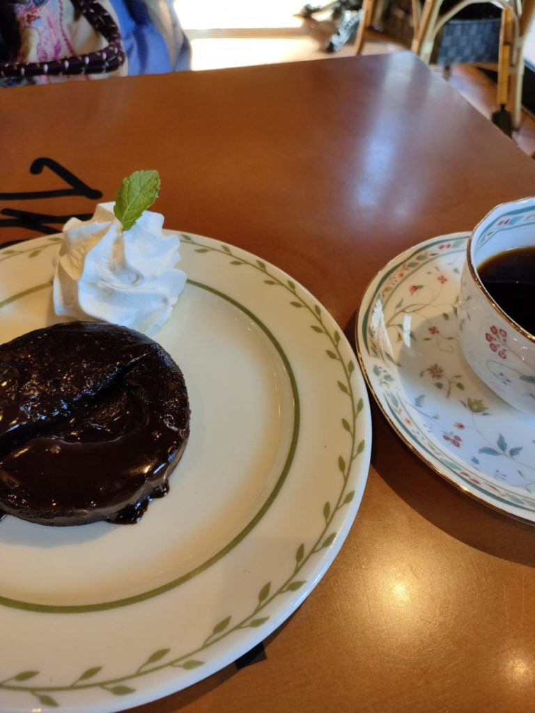 そして強い日差しの中、メインストリートを歩き、ザ・カフェでフォンダン・ショコラとデカフェ。充実の夏休みデイワン。
