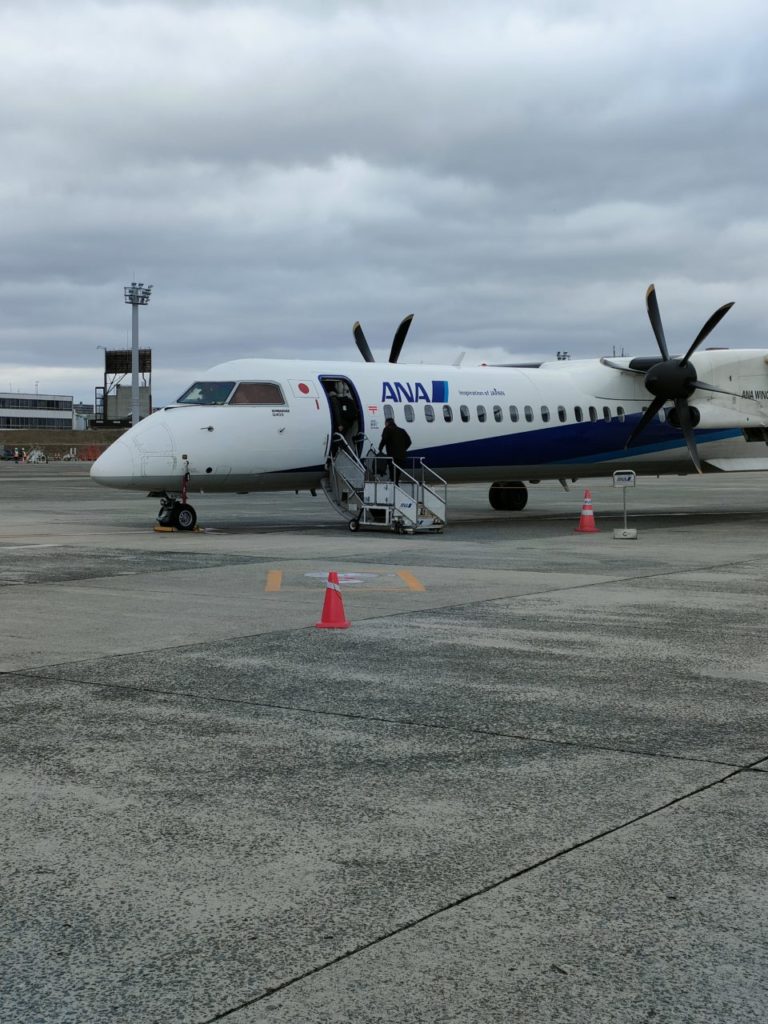 大阪から長崎に移動。プロペラ機。怖くて寝てる。