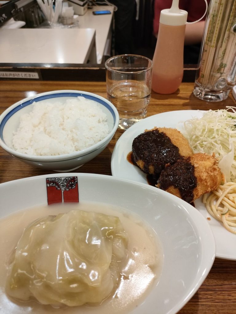 最後の写真は、羽田のアカシア。お味ははグッド、しかしボリュームに驚く。コロッケは炭水化物だった。