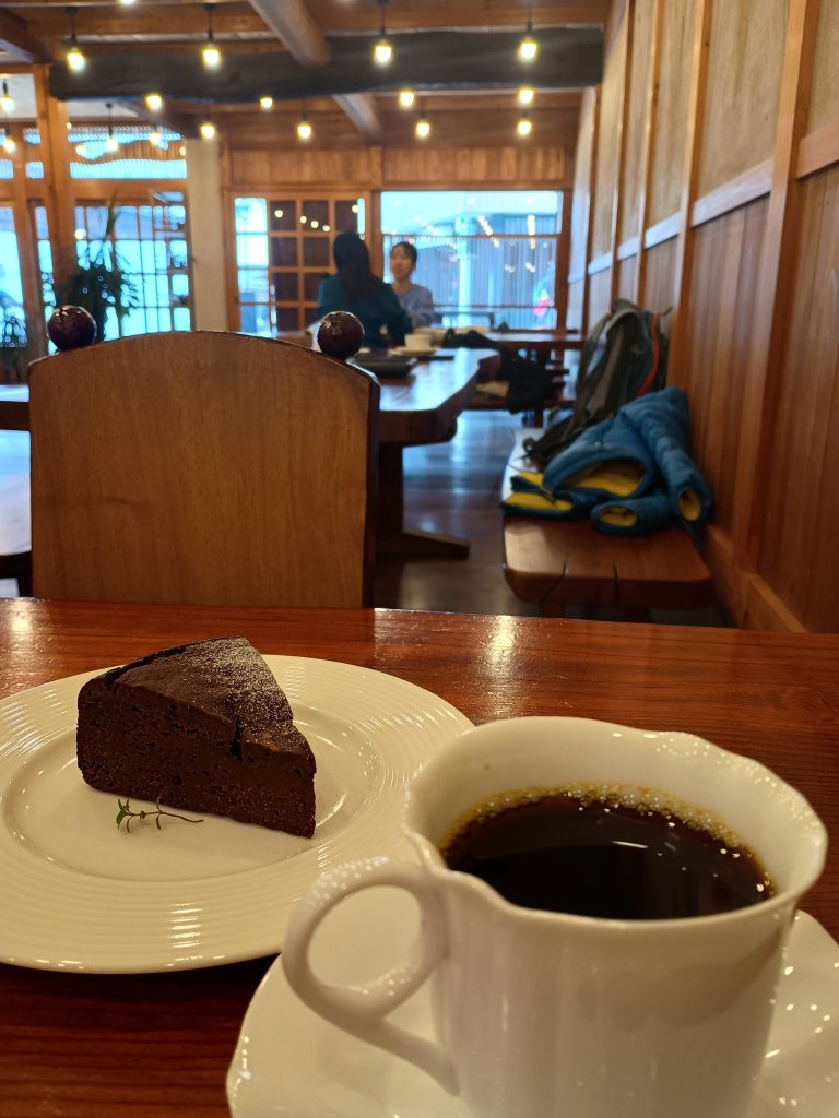 そして最近の観光地のおしゃれカフェや、ちょっと意識高い系カフェにはカフェインレスコーヒーとそしてガトーショコラの組み合わせが増えてる気がする、と言っても三ツ境とここで2つめだろうか。そう言えば閉店してしまったが、中華街もザカフェもそうだった。そして三ツ境のガトーショコラは米粉でベストだし、ここもビーガンベースらしく乳製品は使ってないようなこだわり系で、若干ポリシーとは違うが、材料にこだわっているのでこれはこれでありがたい。