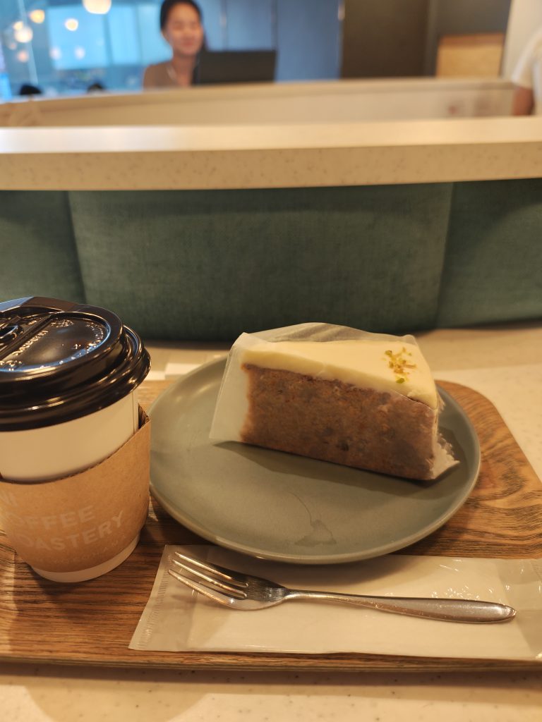 お約束のみかんピーチティーとキャロケーキを食べ、電車に乗る。凄い勢いで寝落ちする。乗り換えてもまた寝落ち。もう今日は復活できないかと思うくらいだったが、駅から家に戻り、何となく家で必要な作業はできた。実は昨日もランチ後展示会場の椅子で寝落ち。とにかく寝落ちする。ランチ後は低血糖が起きる。