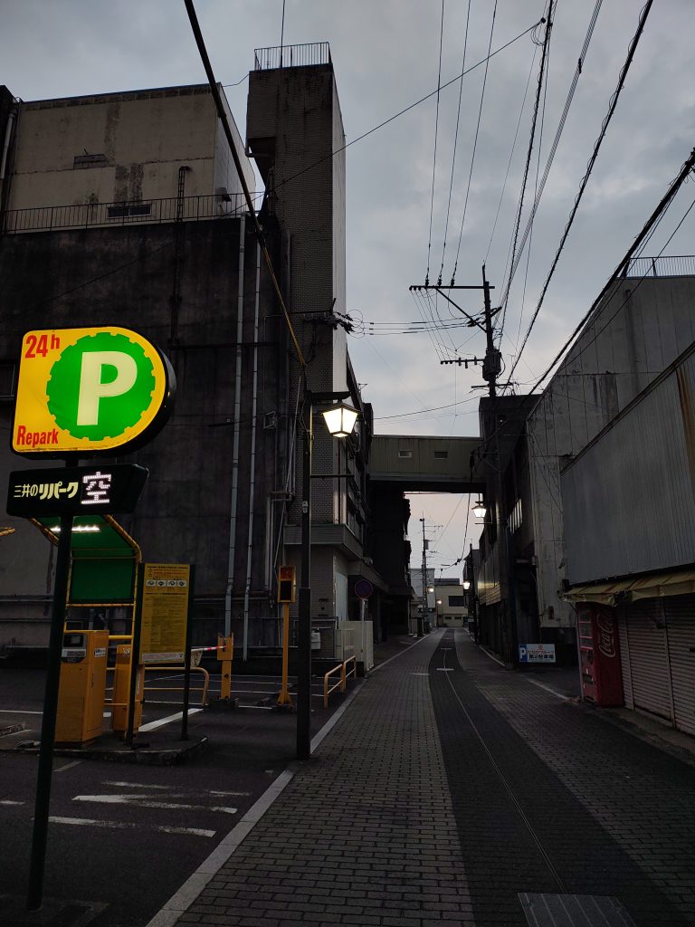 何年ぶりかの2回目。こちらのお宿はなかなか新しくキレイで、周りも再開発がされているが、その脇の国道沿いはシャッター通りで、そこからさらに道を渡り裏路地に入ると、地方都市によく見る虫食いの風景がある。裏路地のおそらくかつての家かビル跡の駐車場横には、煤けたビルの片面の年季の入った壁が見えており、その駐車場も、間もなく再開発待ち、のような話なら未来への期待も感じられるが、そんな裏路地が多すぎて、果たしてこの先どうなるのか、とどうしても明るい想像が出来ない。